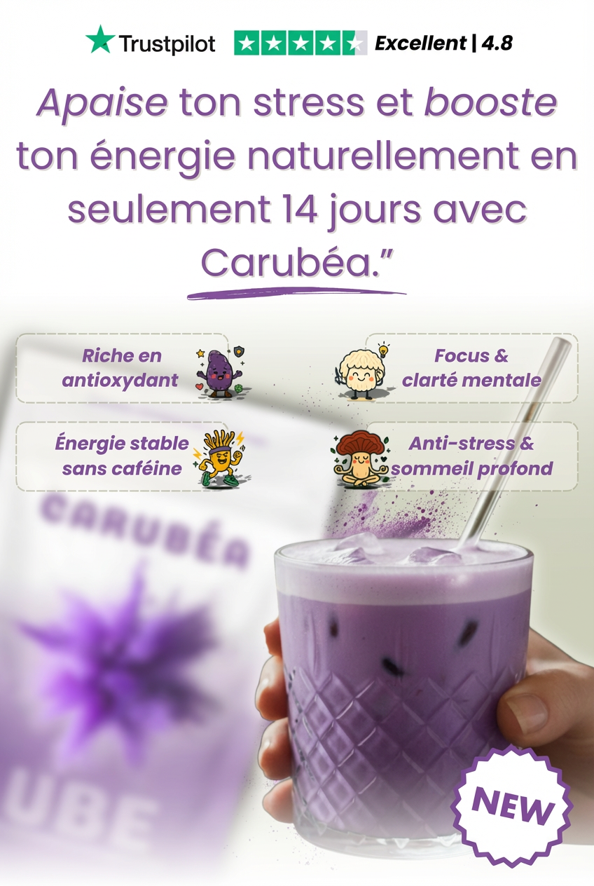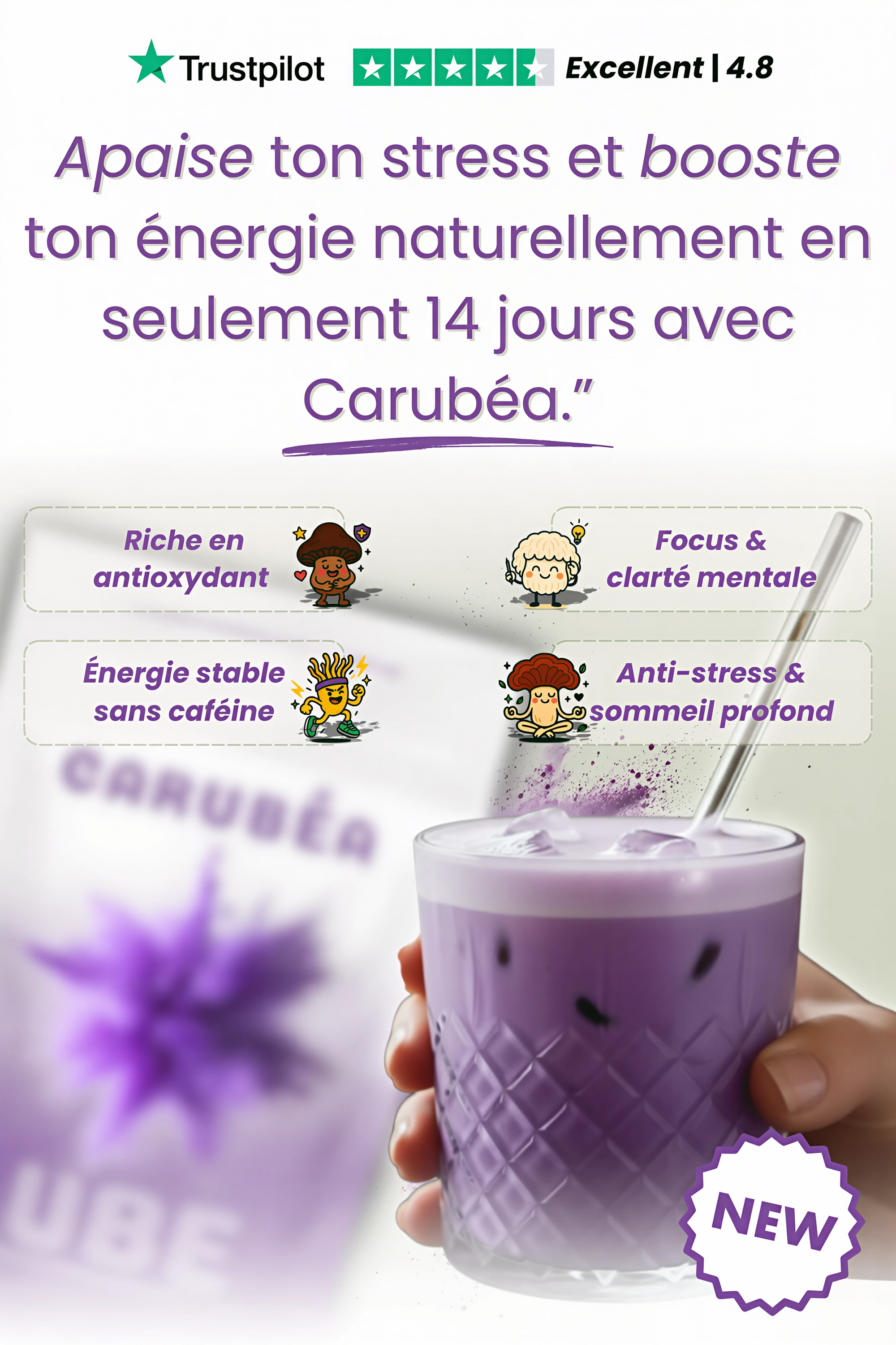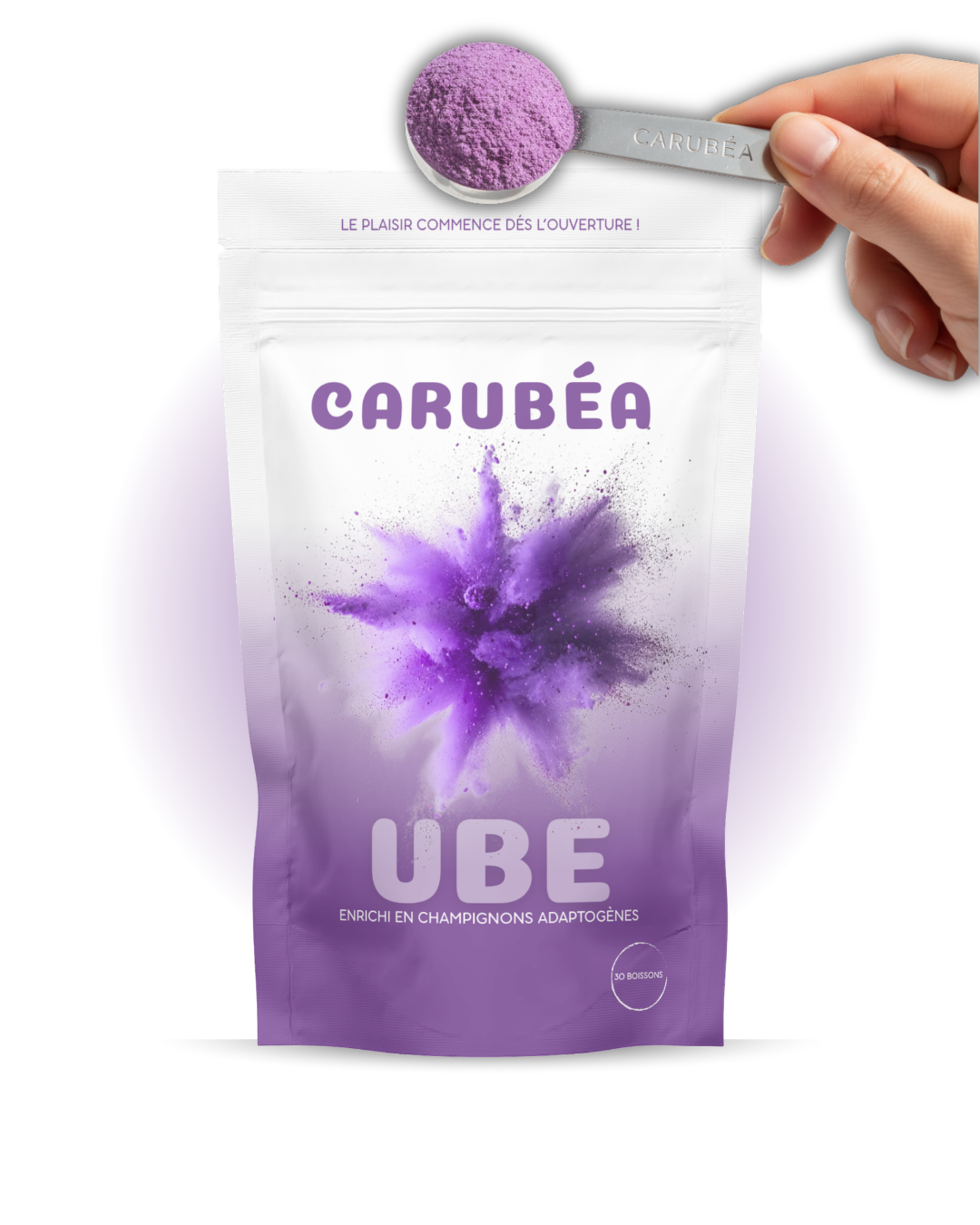 Découvrez l'ube gourmand et les champignons adaptogènes - une formule unique en France pour une énergie douce, un calme intérieur et une meilleure concentration, sans stress.